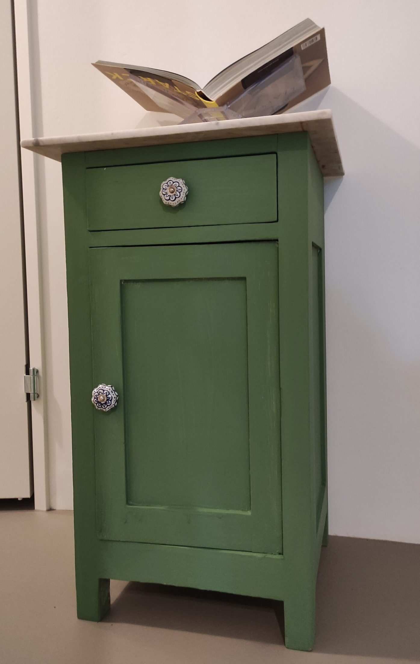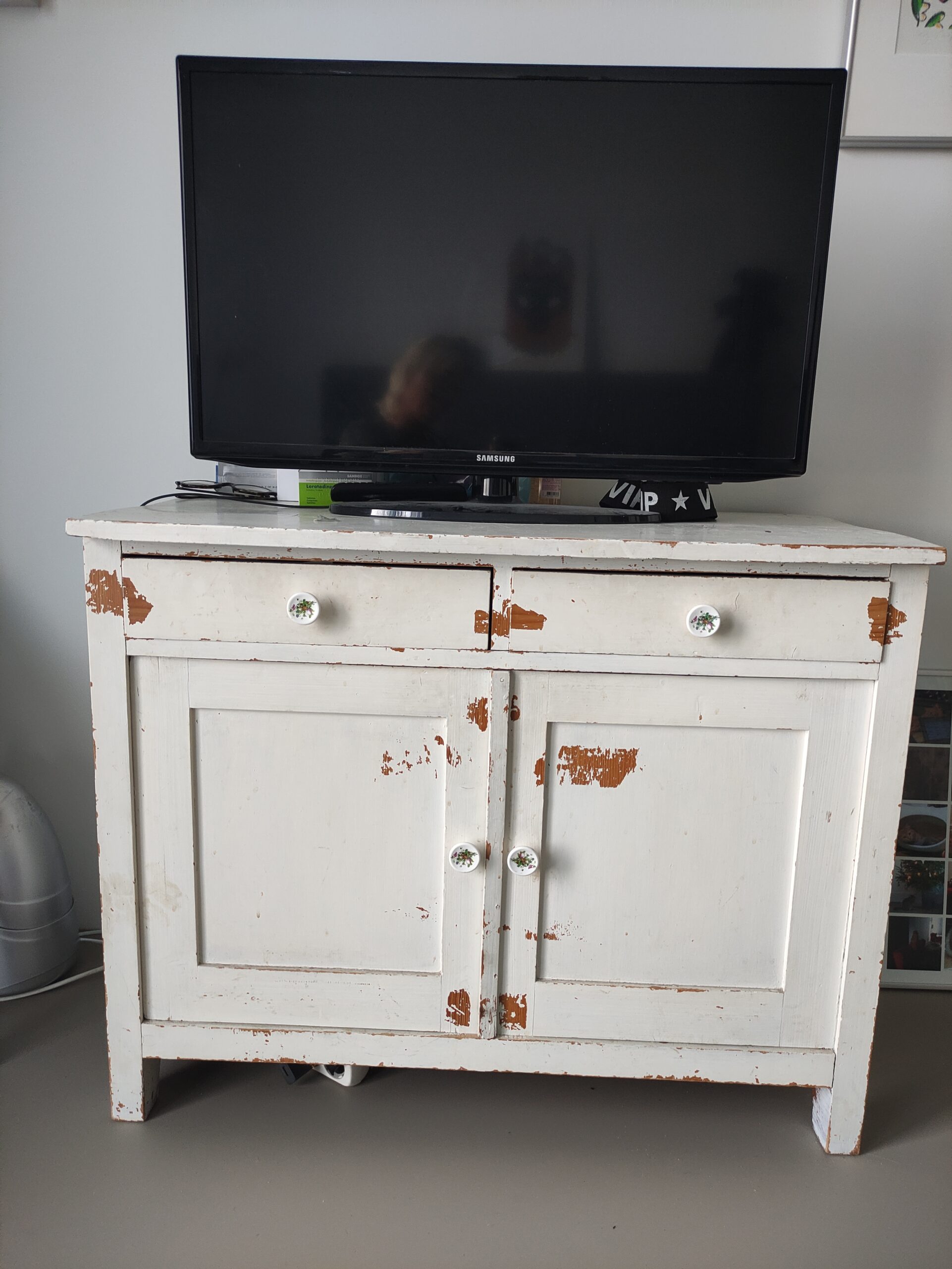 Nu had ik al meer dan 20 (!) jaar 2 kastjes (een commode en een nachtkastje, gekocht door mijn ouders voor mijn geboorte) in de slaapkamer staan waarvan de verf was gebladderd en daardoor dus wel een opknapbeurt nodig hadden. Maar dit viel echt onder de noemer ‘ik moet er echt eens mee aan de slag’.