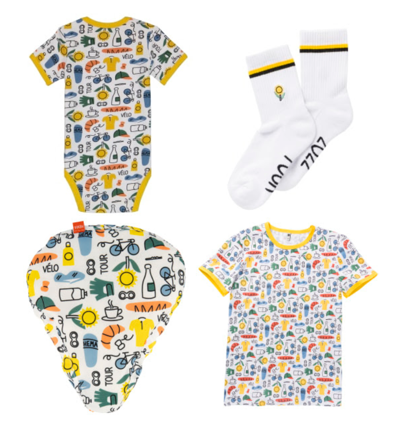 Allerlei zomerse details komen hierin terug die betrekking hebben op typische HEMA-producten, het vieren van de zomer en de Tour de France. Behalve het wielrenshirt zijn er nog meer leuke producten zoals een romper, sokken en een zadelhoes.