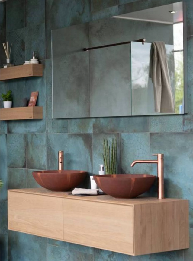 Natuurlijk kan je je badmeubel in dezelfde kleur of houtsoort kopen als je badkamerkast maar als extra accent is het extra mooi om te gaan voor een mix & match combinatie door 2 verschillende kleuren met elkaar te combineren. Bijv. het meubel in een donkere tint en de kast een of twee kleuren lichter.
