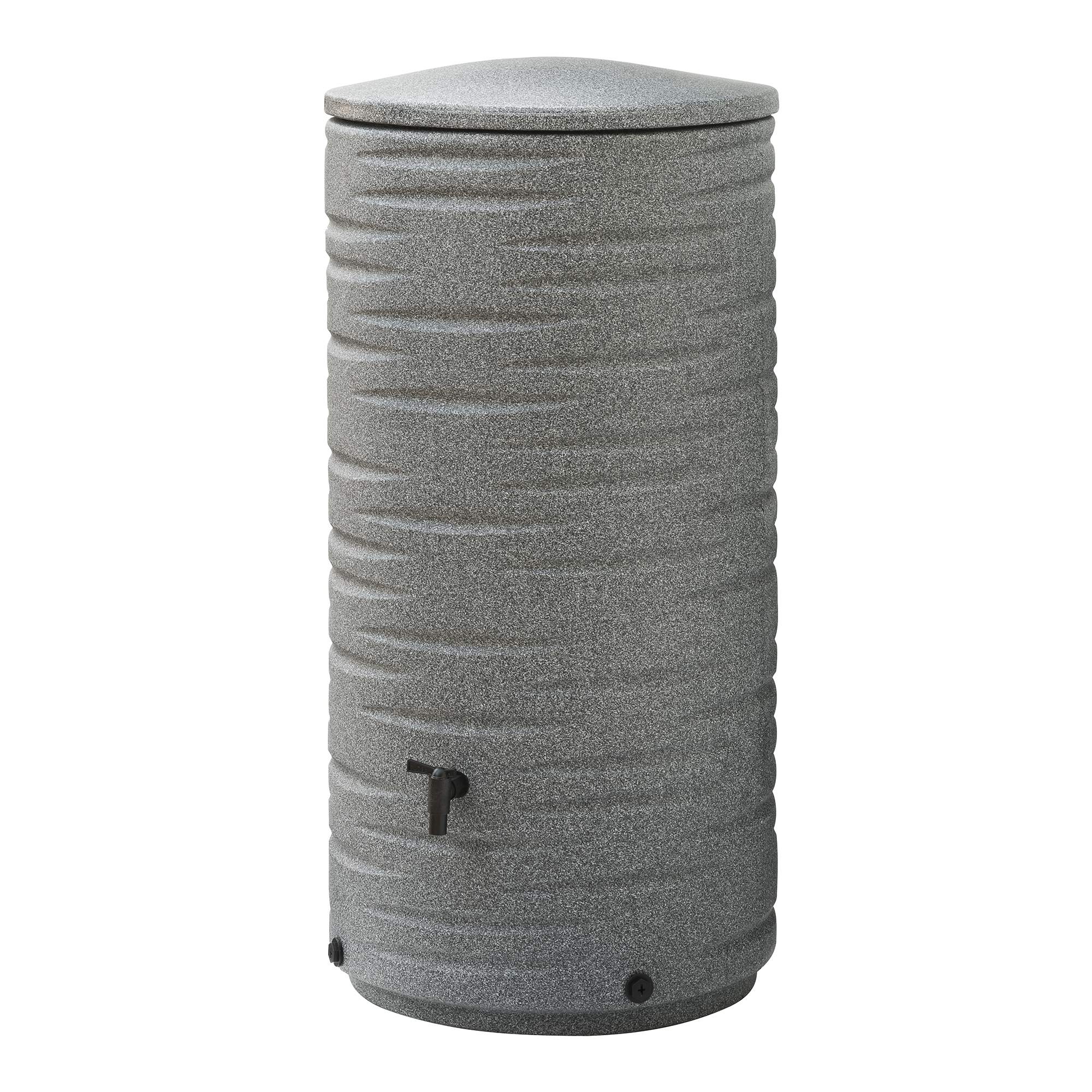 Regenton Cilinder is de moderne versie van de oude vertrouwde ronde regenton. De rotatie gegoten, granietgrijze regenton is uv-bestendig en voorzien van decoratieve inkepingen. Met een inhoud van maar liefst 290 liter en een hoogte van 120 cm (doorsnede 58 cm) biedt de cilindervormige regenton voldoende capaciteit voor een middelgrote tuin. De aansluitset voor de regenpijp is apart verkrijgbaar.