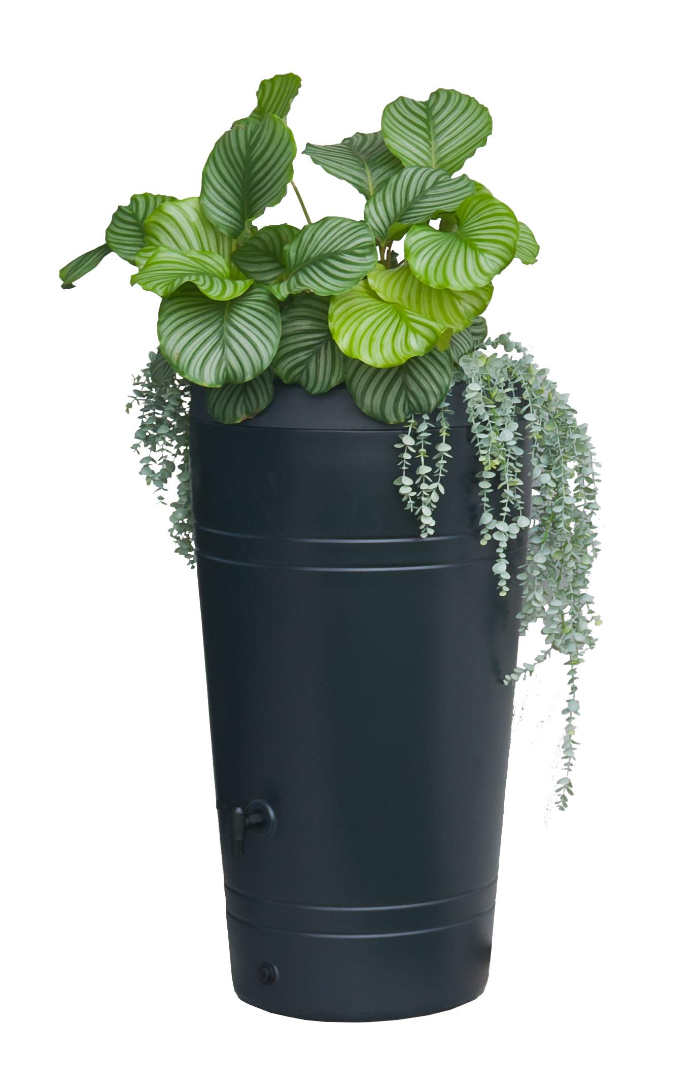 Zo is het nieuwste topmodel van Nature een 2-in-1 design regenton met een ingebouwde plantenbak, waardoor deze regenton er uitziet als een mooie buitenvaas of plantenbak. De vaasvormige 2-in-1 regenton is voorzien van een afneembare plantenbak voor planten of bloemen. Dit maakt de antracietkleurige regenton een eyecatcher voor tuin en terras. De uv-bestendige regenton heeft een inhoud van 230 liter, wordt direct op de regenpijp aangesloten en heeft een kraantje om water te tappen. De aansluitset voor de regenpijp is apart verkrijgbaar.