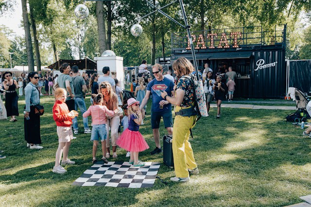 De acts variëren van de band VOF de Kunst tot en met Bankzitters (bekend van YouTube) en duo-optredens van Nederlandse top DJ’s met hun kids. En al wandelend word je verrast met een bijzondere mix van rondlopend theater en vermaak. Of schuif aan bij een van de vele workshops waar wordt geknutseld en nieuwe skills worden geleerd.