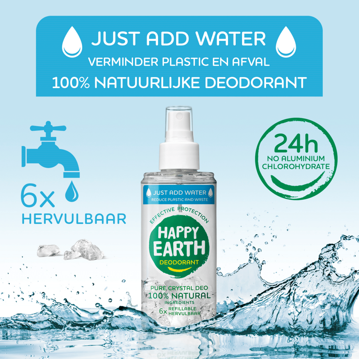 En Happy Earth blijft innoveren en hebben nu de Happy Earth Just Add Water deo spray gelanceerd.