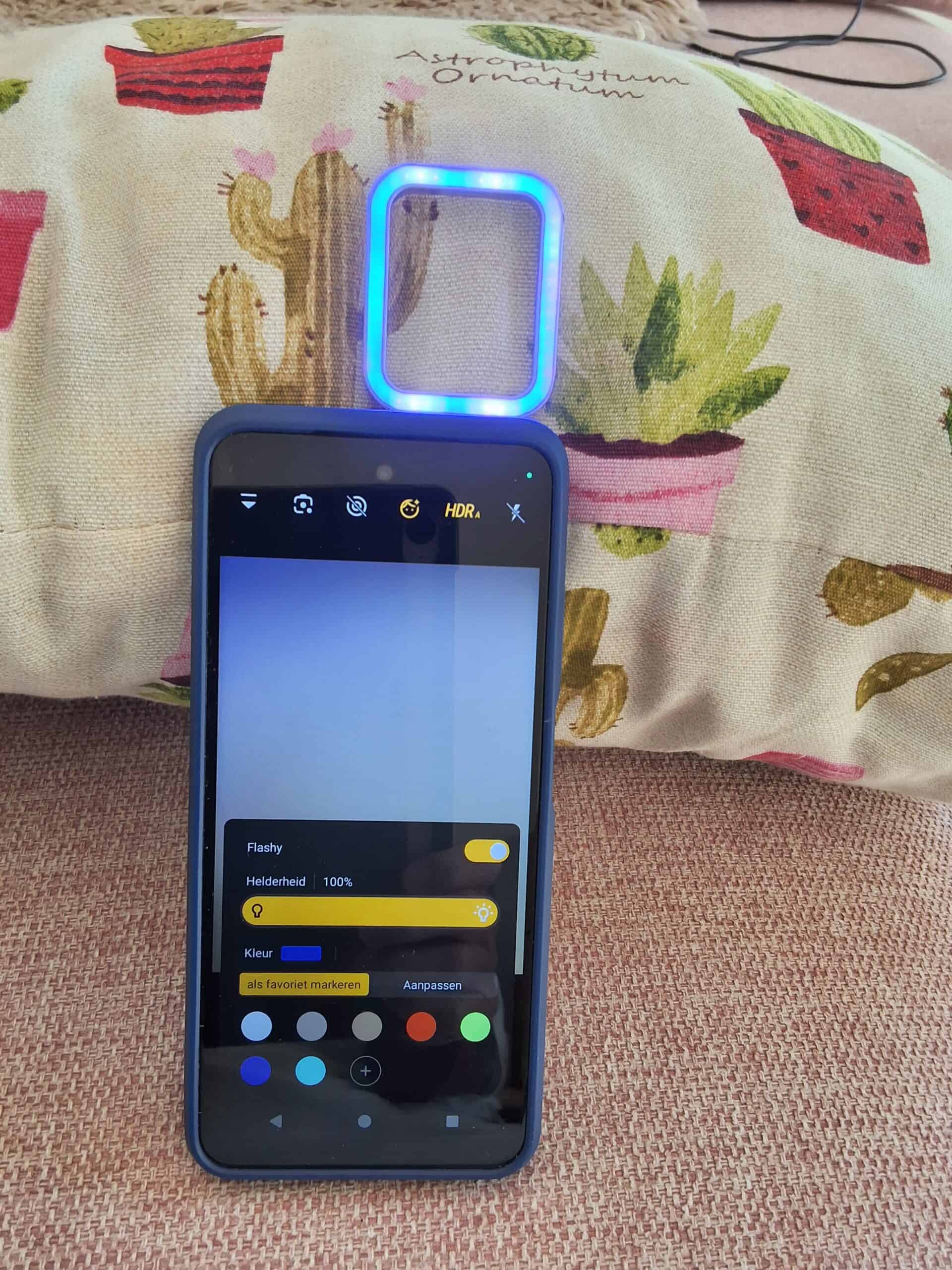 In dit menu kan je de kleur en de helderheid van de LED-lampjes kiezen. En je kan de Flashy modus niet alleen bij foto’s maar ook bij video’s gebruiken.